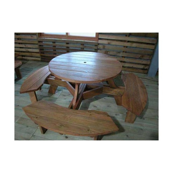 뒤로 원목 원형 일체형 테이블 > 펜션용품